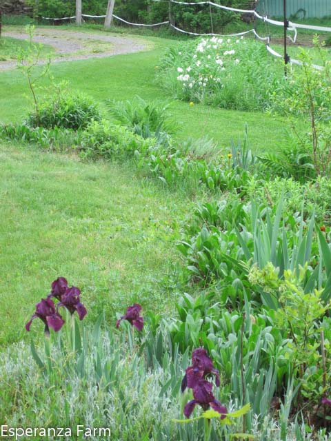 Garden curves I hadn’t noticed before….flagpole garden and the west drive. The white flowers in the daylily line are daffodils, Pueblo and Sailboat.