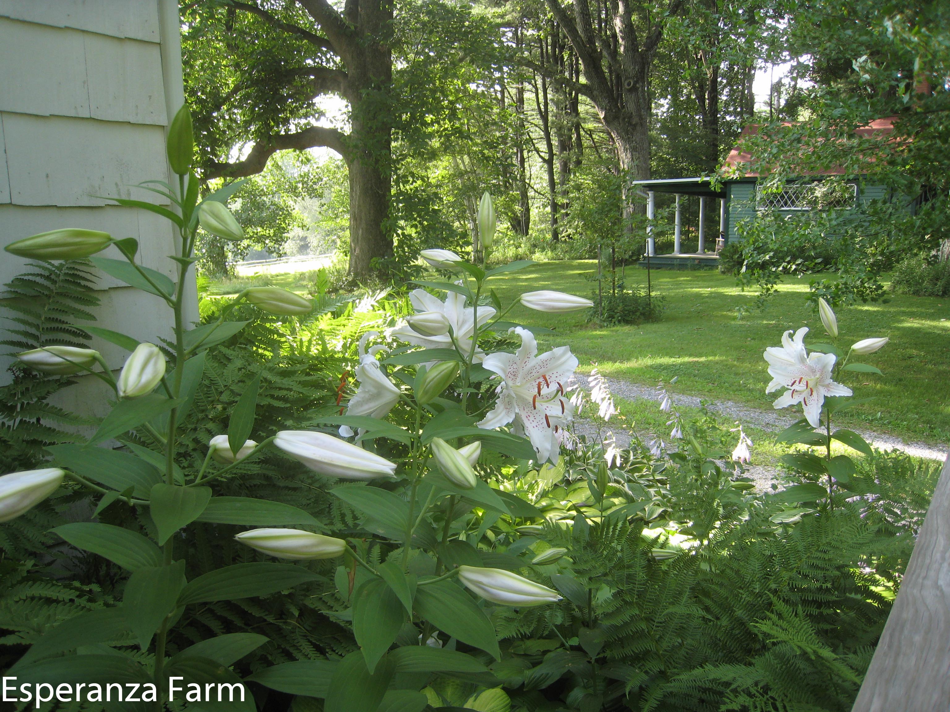 Some lilies, ‘Muscadet’ and ‘Casa Blanca’ by the east porch