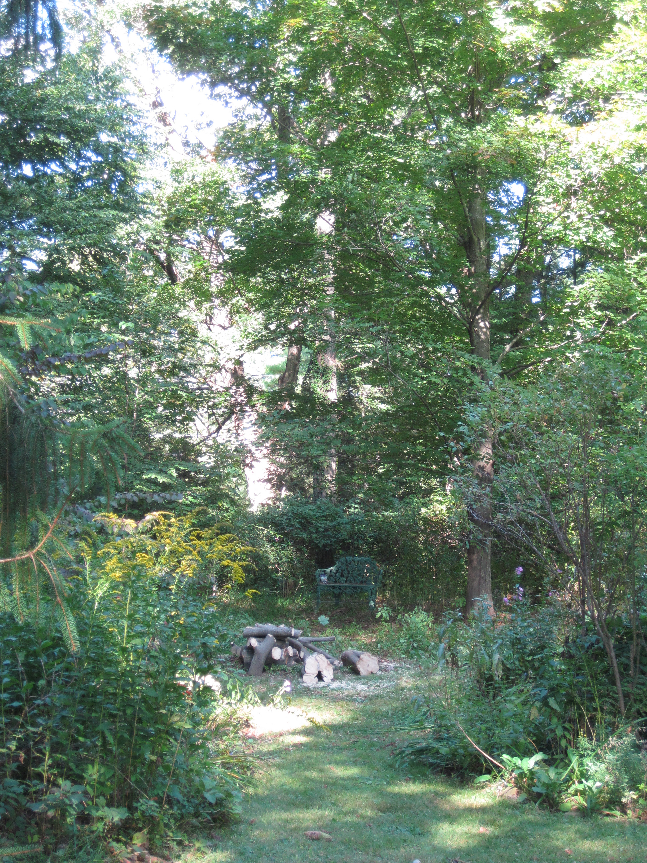 But now what? The space has an entirely different feel to it, the beanpole locust in the background is suddenly prominent, as is the Sugar Maple. The paths, which bent at the tree, don’t quite make sense anymore and there is a whole lot more sun, and more distance. This will take some consideration.