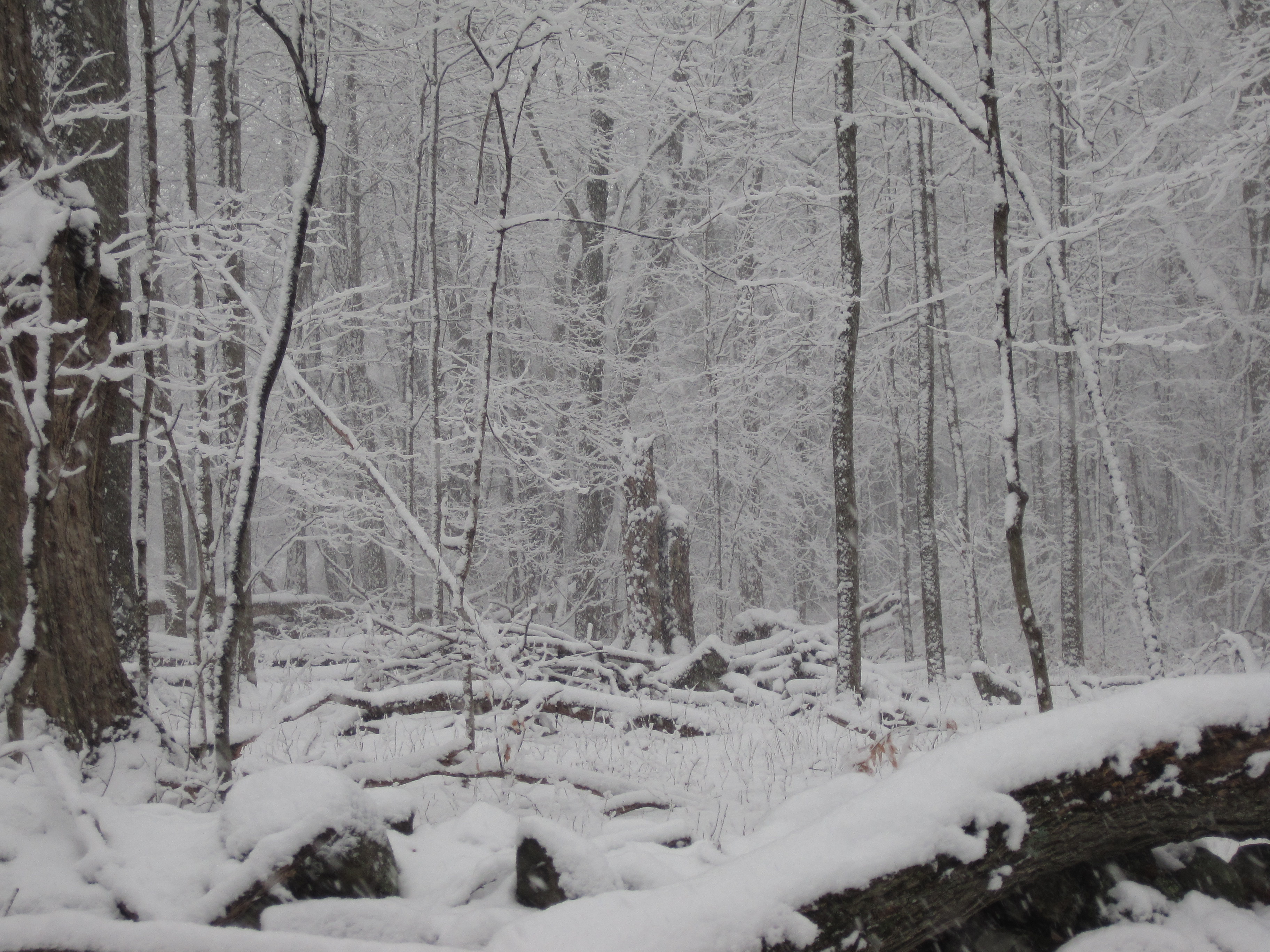 It has mostly melted now, but I rather liked this image of one of the old sugar maples in the Spring Lot, now a snag.
