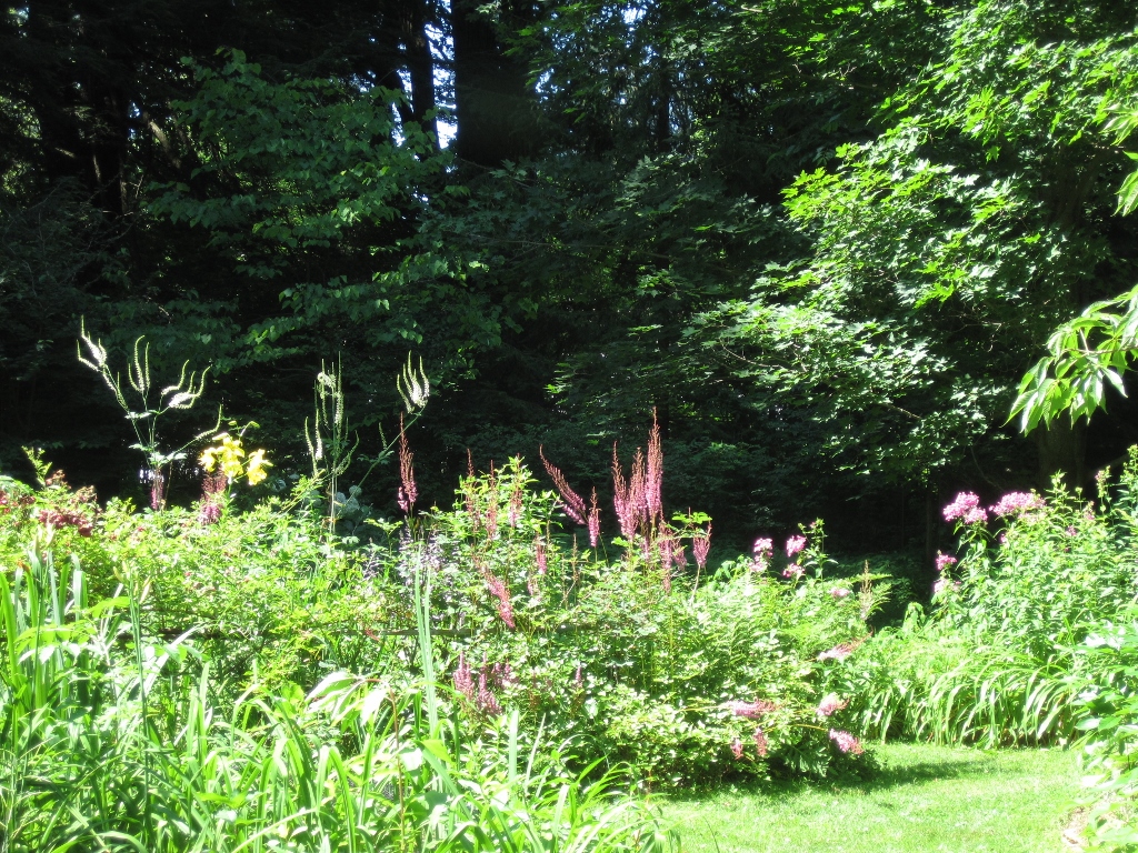 Left to right: Black snakeroot*, hybrid lilies, ostrich plume astilbes, and garden phlox. The snakeroot is hitting seven feet this year.