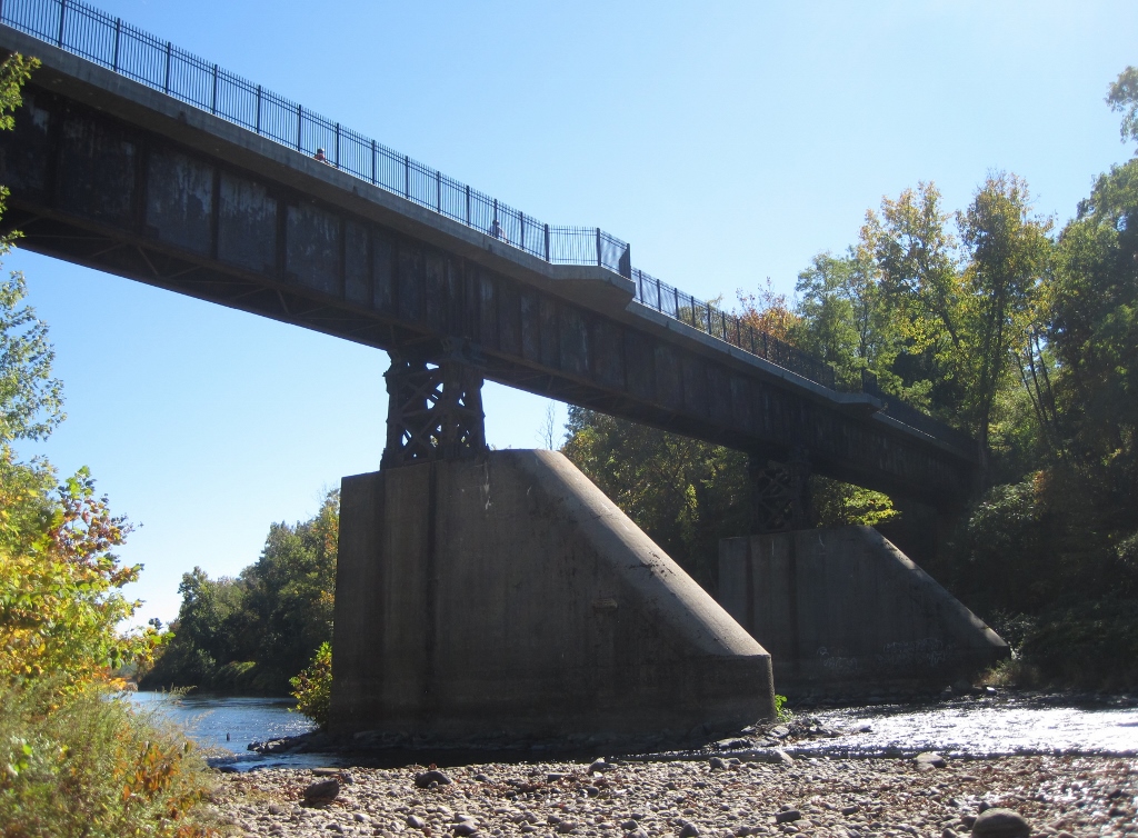 The shadow is an old railroad bridge, a big old railroad bridge. The old New Haven and Northampton Canal Line, a Connecticut dream.