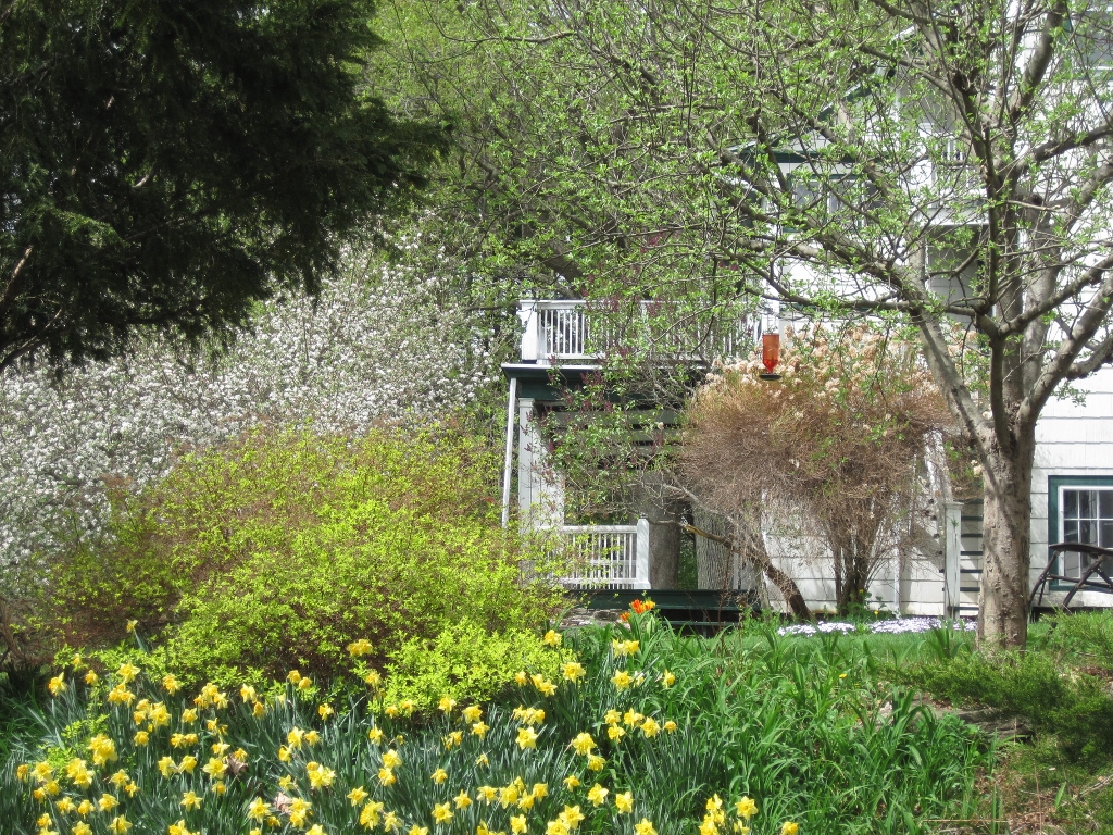 This was taken last year, but I still like it for the composition. It is the apple tree that makes it work particularly well. This year the apple has a few blossoms, but not many. I can’t say I am surprised that it is taking the year off! The crabapples are blooming, but rain for a whole week followed by wind has not left much in the way of a full flower show. So it goes.