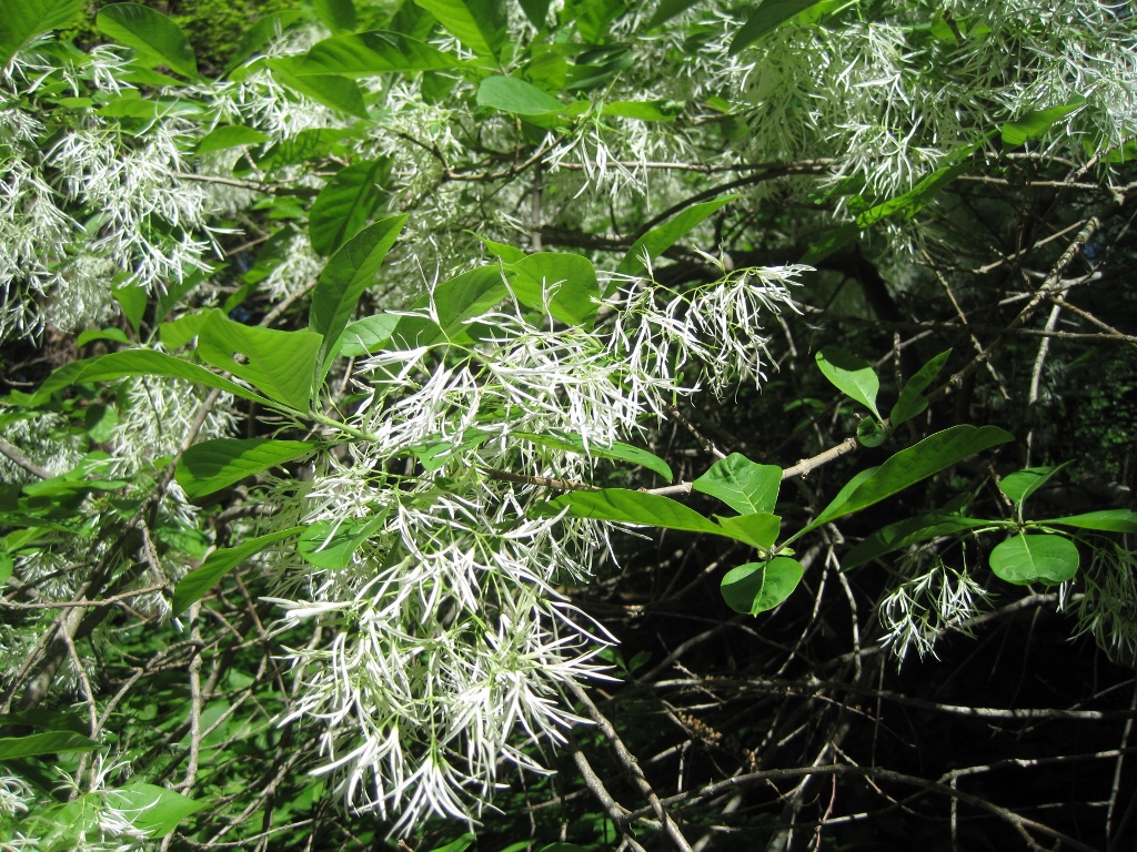 or Fringe Tree. Right on schedule, as always, it looks like the removal of that big old limb has not bothered it in the slightest. A completely underused shrub, incredibly fragrant, disease resistant, native, reliable bloomer, long lived, good form. And so on! The only thing I can figure is that it must be a nightmare to propagate. Indeed, I believe you do need male and female plants, which doesn’t help, and fruit set is erratic. Still!