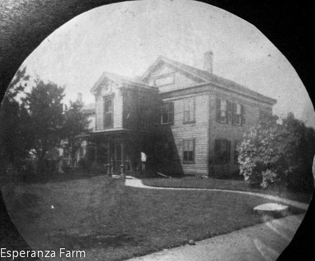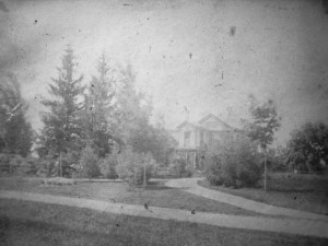 So what else? Well, corsets, bustles and hats were clearly in fashion. Women’s hair was always up. Tennis was played with a tie on. Note the terrarium on the right, a wonderful Victorian piece of furnishing. Note the impeccable edge of the path and the lawn… Now, where are we? Believe it or not, they are sitting just about where today the grill is just outside the dining room, where the current east porch narrows. The porch in the photo is Queen Anne style, and was added in the 1870’s. It appears to have been at least two different colours, though what we don’t know.* The porch and the room above it were extended out and above the old, original farmhouse entrance, which was a very simple Greek Revival house.* The Queen Anne porch had a short life, in 1893 the north ell is built and the east facade gains its current appearance with classically inspired square pillars without ornamentation on the nearly full length porch. The tree is long, long gone. It looks like it was a member of the buckeye/horse chestnut family. Since then an elm, and now a Japanese maple have occupied that spot.
