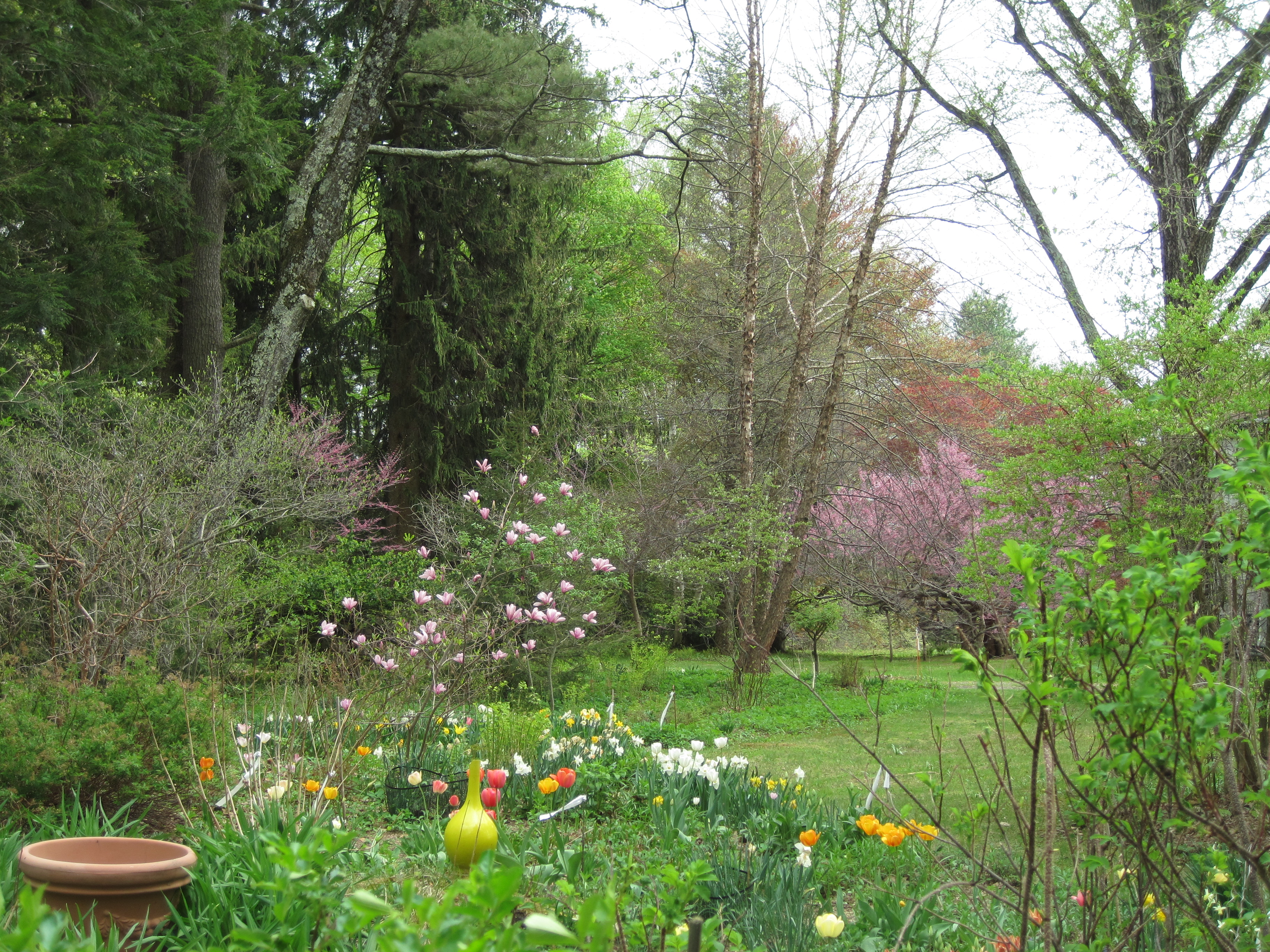 East lawn: Redbuds, Saucer Magnolia, Daffodils, and tulips